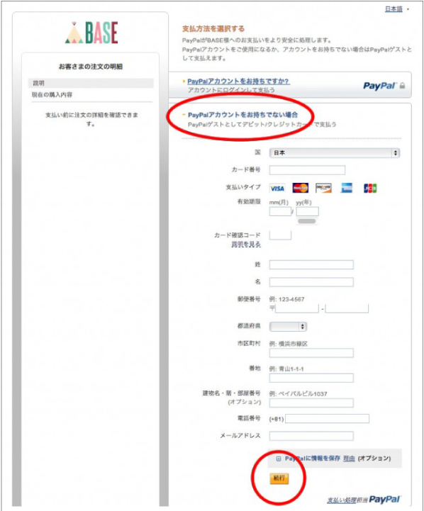 - PayPal アカウントをお持ちでないお客様は「クレジットカードで支払う」を選択してお手続きください。
