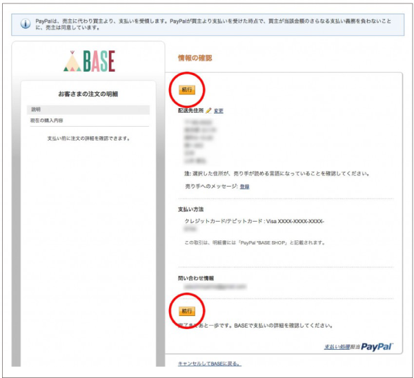 4:決済内容を確認し、[続行] または [同意して続行] をクリックします。