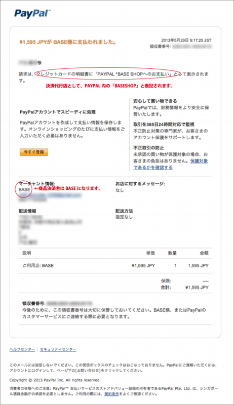 ★決済は、当店[mon petit trésor]ではなく、PayPal 決済上のマーチャントである BASE(ベイス)に送付されます。