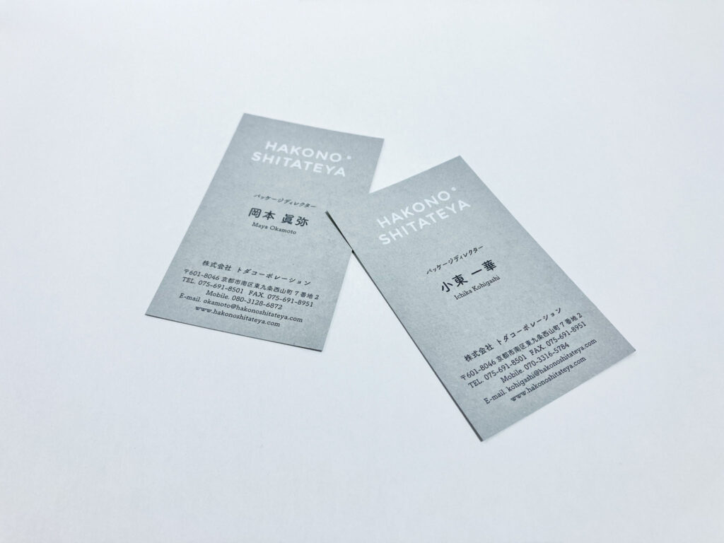 HAKONO SHITATEYAの部分は白色で箔押しをしています!印刷とはまた違った雰囲気を出すことができるので、目立たせたい部分に使われることが多いです⭕️