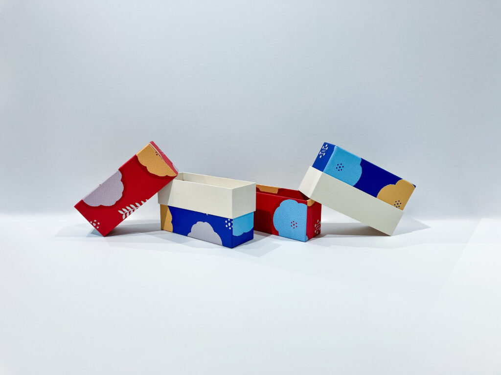 そんなちょっと変わったかぶせ式の箱にお花をUV印刷で刷ってみました🌼印刷や箔押しでワンポイントなどおしゃれになる箱を作ることができます⭕️